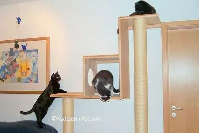 So, wenn dir unsere Kratzsäulen gefallen, musst du deine Menschen so lange bequängeln, bis sie dir auch so ein paar hübsche Möbelstücke gönnen! Und wenn es dann so weit ist, dass sie fertig sind, schick uns mal ein paar Fotos zur Ansicht! Wir haben schon eine kleine Sammlung angelegt, von all den Katzenbäumen, die auf unsere Anregung hier inzwischen gebaut wurden. Es freut uns immer wieder, zu sehen, wie du bei dir daheim dann deinen Spaß damit hast!